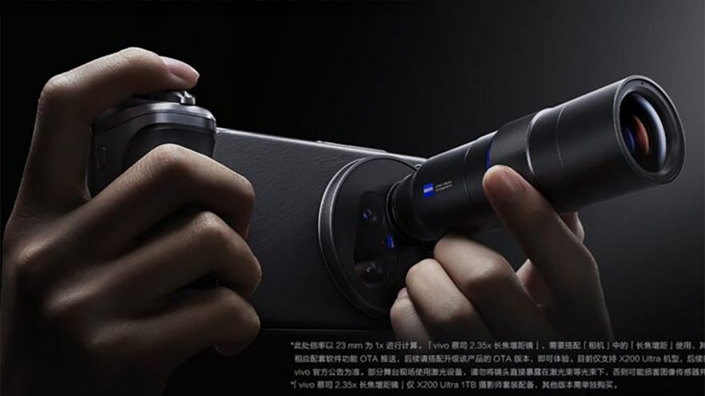 Другие, например, новейший Vivo X200 Ultra, поставляются с ещё более безумными аксессуарами, такими как навинчивающийся телеобъектив, который превращает смартфон в странное устройство, а также… в лучшую камеру с зумом на рынке.