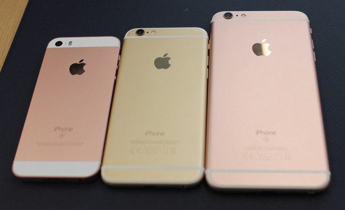 Слева направо: iPhone SE, iPhone 6s, iPhone 6s Plus