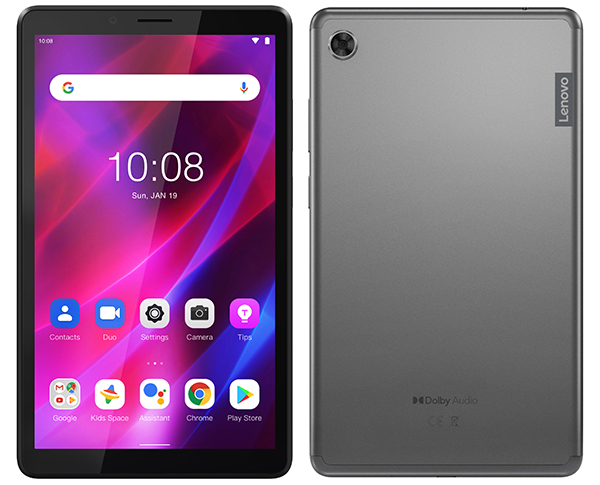 Lenovo Tab M7 третьего поколения оснащен 7-дюймовым IPS-экраном с разрешением 1024 х 600 точек, парой 2-мегапиксельных камер, слотом для карт MicroSD и аккумулятором на 3 750 мАч.