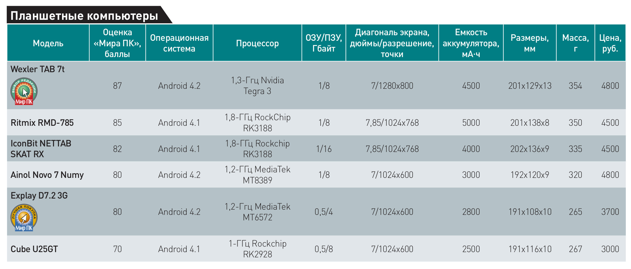 Что касается наших предпочтений, то значок «Лучшая покупка» на сей раз достается планшету Explay D7.2 3G. Несмотря на не самую лучшую матрицу, он имеет отличную функциональность при весьма привлекательной цене. «Выбор редакции» по праву достается модели Wexler TAB 7t — она обладает неплохим дисплеем, хорошей производительностью и продуманной функциональностью.