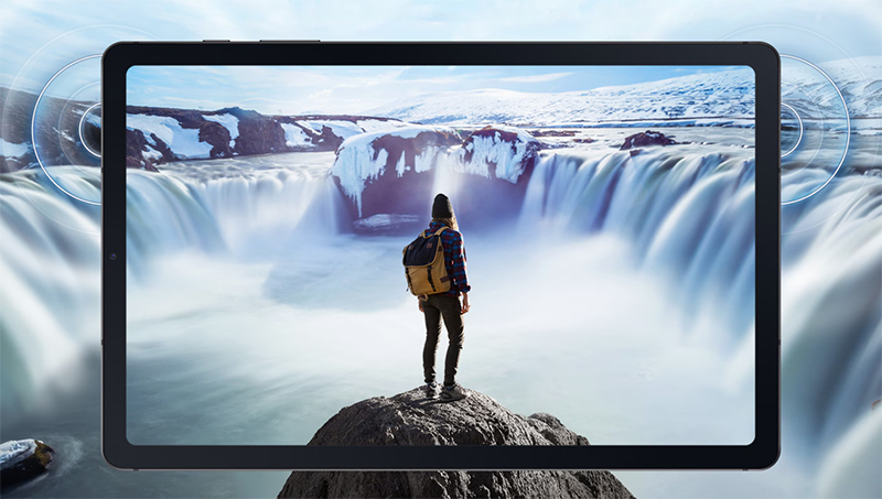 Также упоминаются камеры на 5 и 8 мегапикселей, аудиосистема разработки компании AKG из двух динамиков с поддержкой Dolby Atmos, слот для карт MicroSD емкостью до 1 Тбайт, разъемы 3,5 мм и USB-C, аккумулятор емкостью 7 040 мАч, обеспечивающий до 14 часов проигрывания видео.