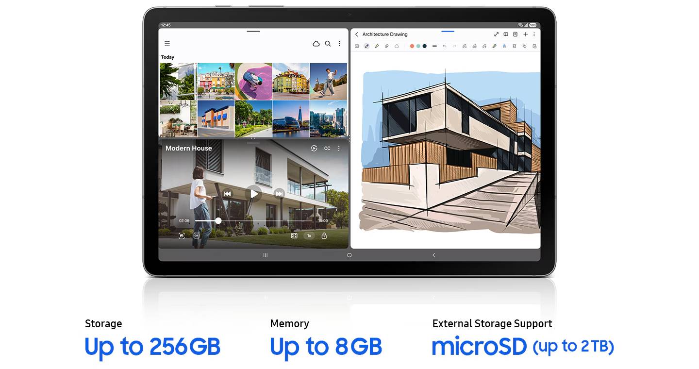 Во-первых, взгляните на цены. Обратите внимание, что этот планшет на базе процессора Exynos 1380 доступен в вариантах только с Wi-Fi и с Wi-Fi + 5G. Кроме того, базовая модель оснащена 6 ГБ оперативной памяти и 128 ГБ встроенной памяти, но вы можете увеличить объем памяти до 8/256 ГБ. Конечно, на борту есть слот для карт памяти microSD, так что вы можете увеличить объем памяти и таким образом.