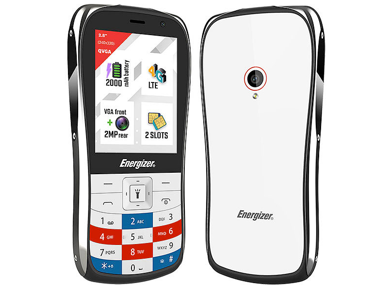 Energizer E284S оснащен 2,8-дюймовым TFT-дисплеем с разрешением 320 х 240 точек, модулями Wi-Fi и LTE, фронтальной и задней камерами на 0,3 и 2 мегапикселя соответственно, а также аккумулятором на 2 000 мАч. Для подзарядки последнего есть порт MicroUSB. Также на корпусе имеется 3,5-мм разъем.