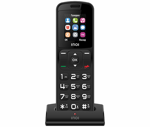 Цена Inoi 104 составляет 990 рублей. В комплект его поставки входит настольная док-станция для подзарядки.