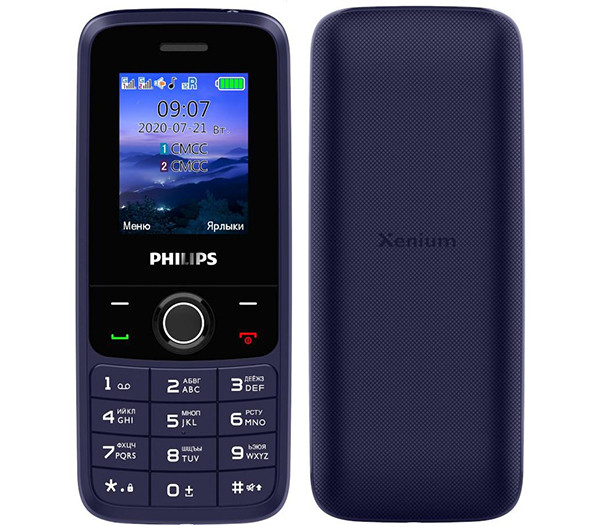 Philips Xenium E117 выпускается в двух цветовых вариантах: черном и синем.