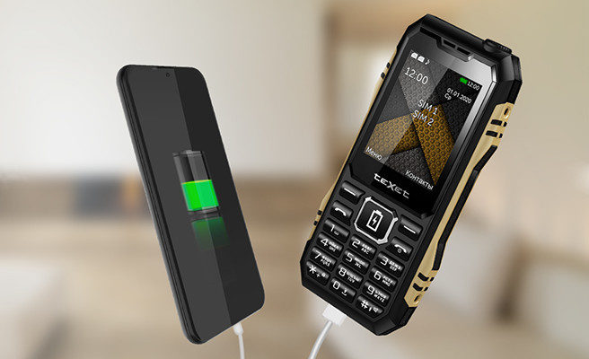 Главная особенность модели – аккумулятор на 4000 мАч. Это вполне прилично и по меркам смартфонов, не говоря уже о простейшем кнопочном мобильнике. Более того, Texet TM-D428 имеет полноформатный USB-порт на корпусе и может заряжать другие гаджеты, выступая внешним аккумулятором.