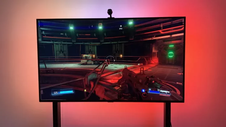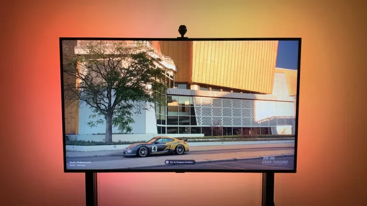 Светодиодные панели Govee Flow Pro Wi-Fi для телевизора работают почти так же, как светодиодная панель Philips Hue Play, окрашивая пространство за телевизором в цвета, которые меняются в зависимости от изображения на экране. Разница в том, что вместо использования сигнала HDMI, отправляемого на телевизор, система Govee использует камеру, установленную в верхней части экрана, которая отслеживает воспроизводимые цвета и отражает их на стене.