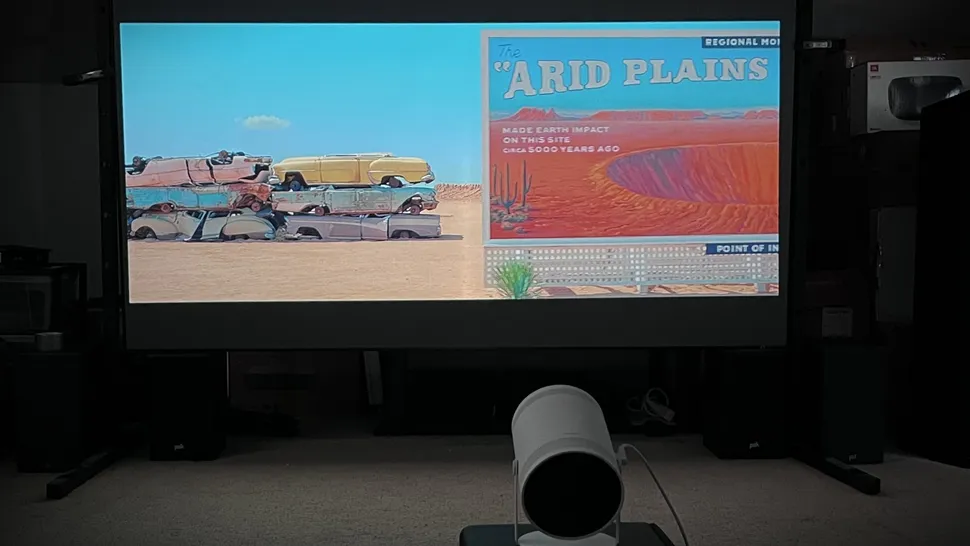 Когда мы тестировали The Freestyle 2-го поколения, мы обнаружили, что он значительно менее яркий, чем обычный проектор для домашнего кинотеатра, но это было ожидаемо, учитывая небольшой размер Samsung и яркость 230 люмен. Но качество изображения — не главное в The Freestyle 2-го поколения. Это проектор, который позволяет легко проецировать большое видеоизображение в любом месте, а функции автоматической коррекции трапецеидальных искажений и фокусировки Freestyle 2-го поколения гарантируют, что изображение будет идеально квадратным (или прямоугольным, если быть точным) сразу после настройки.