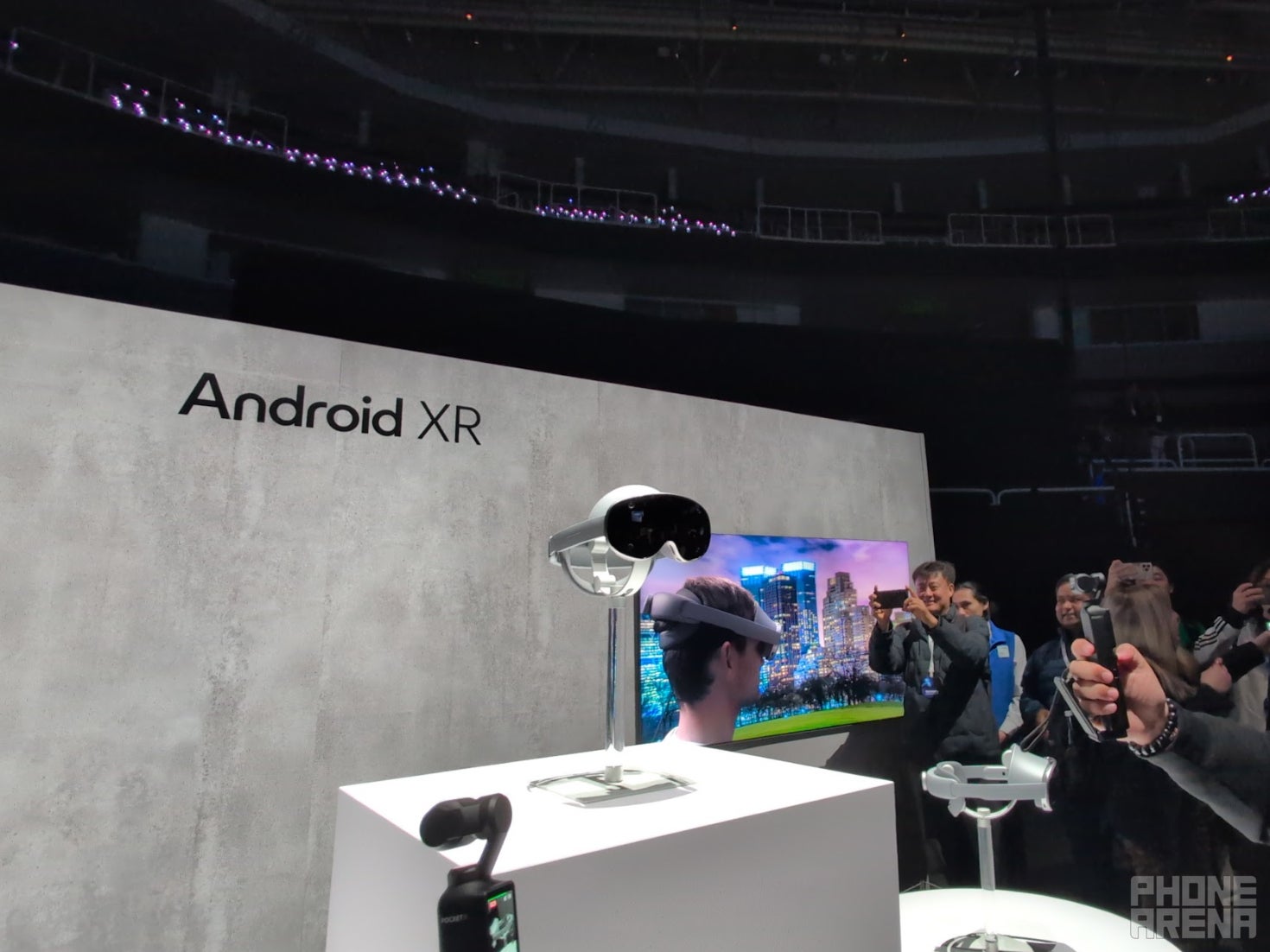 Как было показано ещё в декабре, гарнитура очень похожа на Apple Vision Pro. Даже цветовая гамма почти такая же: гигантская передняя панель из тёмного стекла и серебристые и серые оттенки вокруг неё. На стенде, где она представлена, на заднем плане гордо красуется надпись «Android XR»: новая операционная система Google, созданная для устройств XR (расширенной реальности).