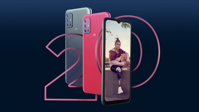 Motorola Moto G20 доступен в зелено-голубом и розовом исполнении.