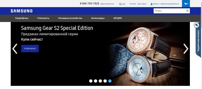 Корпорация Samsung открыла первый официальный онлайн-магазин собственной продукции, в котором уже доступны покупателям мобильные и носимые гаджеты, а также несколько акций приуроченных к открытию и возможности клуба привилегий. Среди представленного ассортимента посетители найдут умные часы, фитнес-трекеры, аксессуары, а также смартфоны, в том числе и флагманы — Samsung Galaxy S7 edge и S7. На сайте интернет-магазина Samsung работает круглосуточная справка и поддержка оператором и по телефону.