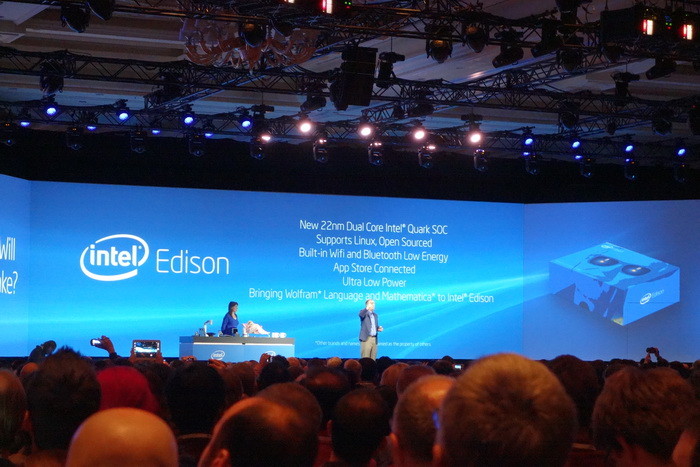 Пожалуй, единственным привычным анонсом стал миниатюрный компьютер Edison. Он умещается чуть ли не в крупной пуговице, но при этом обеспечивает производительность «на уровне Pentium» (вот бы знать какого поколения) и даже снабжен беспроводными интерфейсами.
