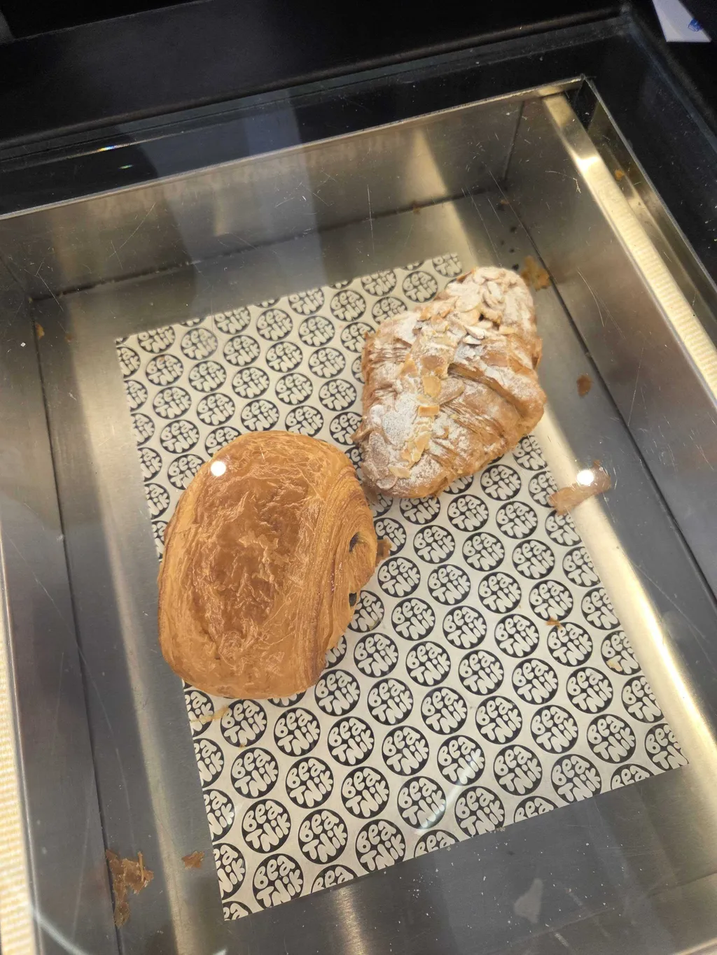 Затем я взял два своих смартфона и отправился в местную кофейню, чтобы протестировать редактирование фотографий с помощью ИИ в реальных условиях. Когда я пришёл туда ближе к вечеру, там оставалось всего два круассана: обычный и шоколадный.