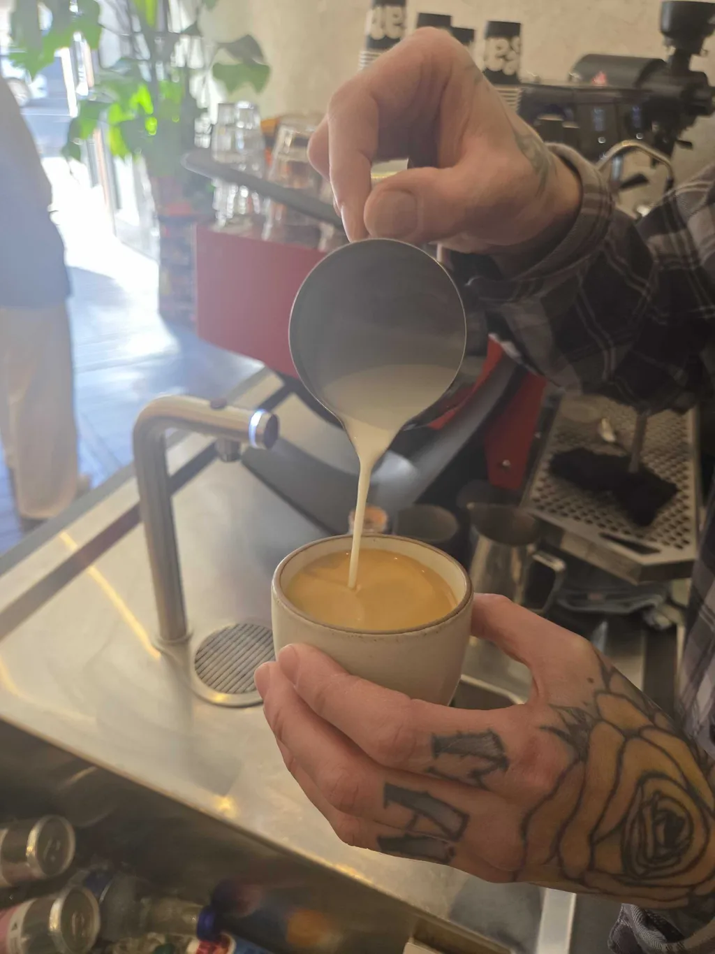 Я спросил бариста за стойкой, может ли он налить мне флэт уайт, чтобы я мог попытаться забрать у него чашку с помощью Galaxy AI и Apple Intelligence.