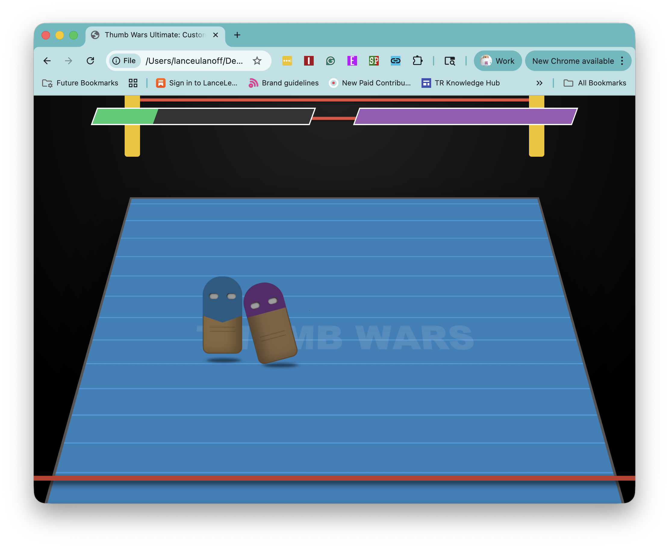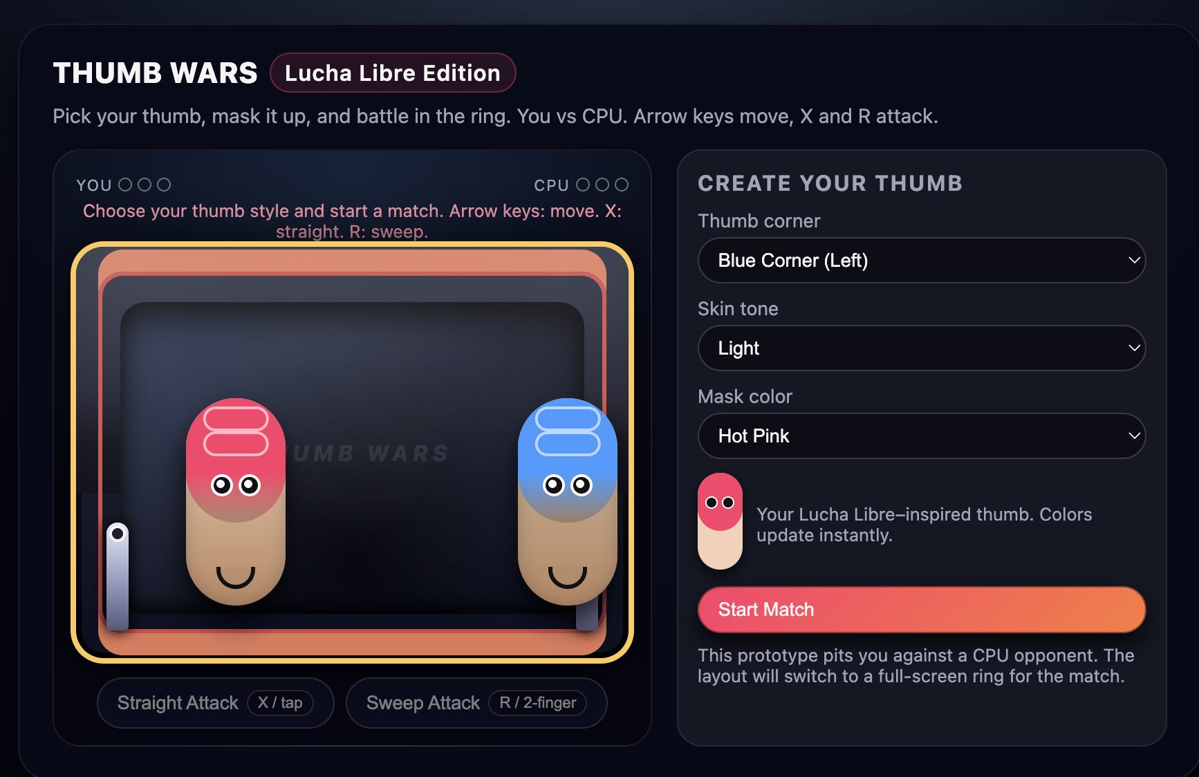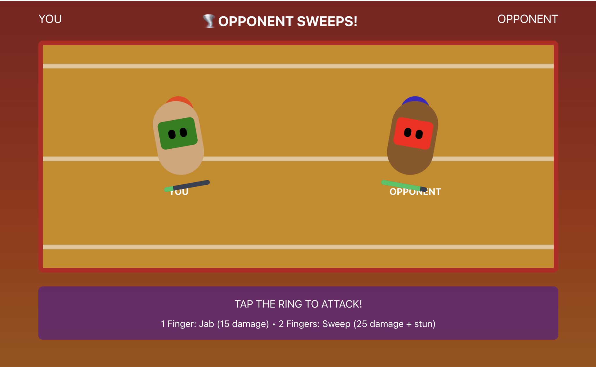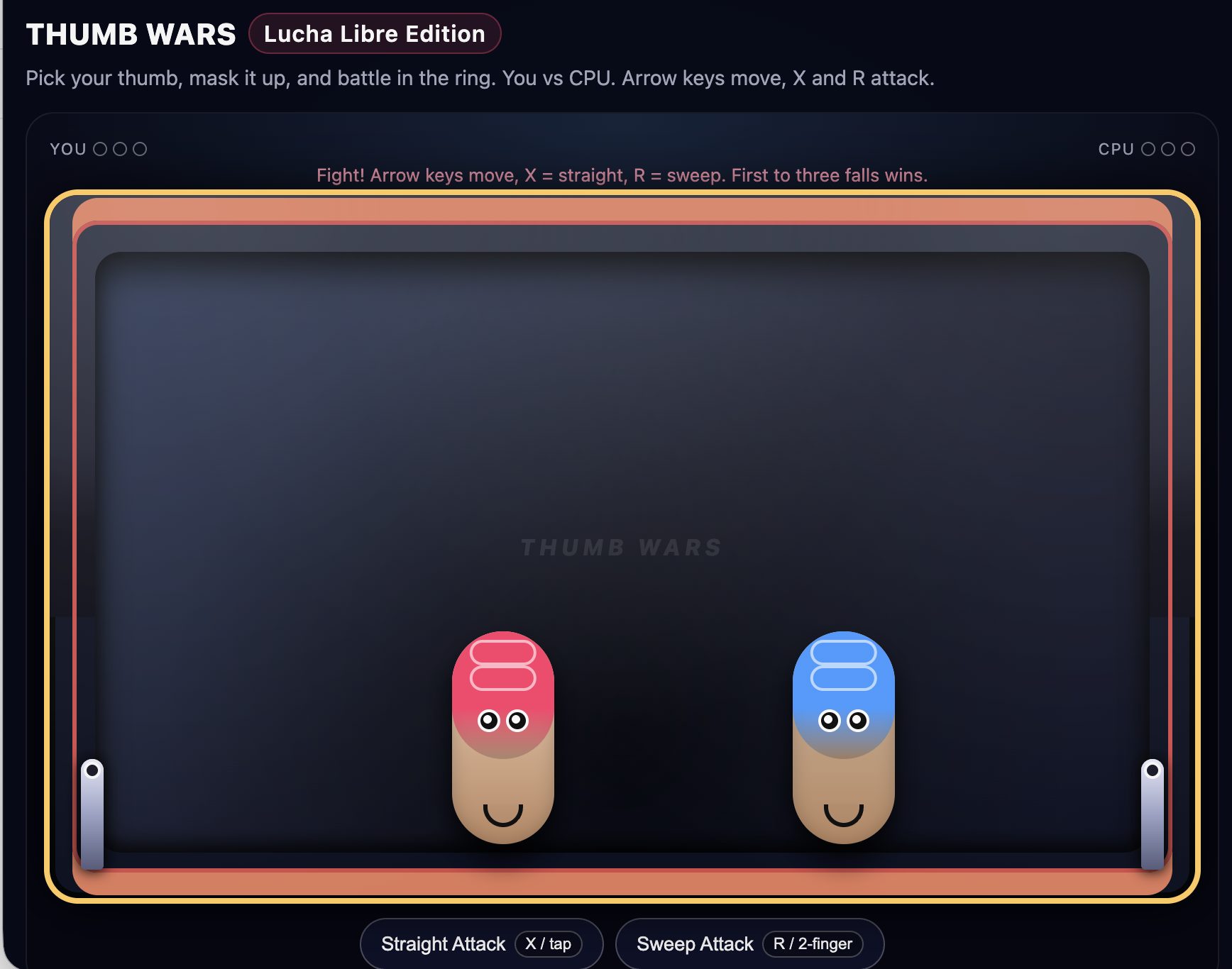 Идея для цифровой версии была такой: виртуальный ринг и два «бойца»-пальца, которые управляются касаниями экрана или кнопками на клавиатуре. Когда вышла умная Gemini 3, автор эксперимента решил, что нейросеть должна справиться с этой задачей.