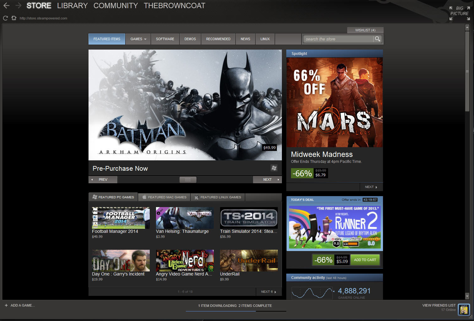 Обсуждая игры, нельзя обойти вниманием такого тяжеловеса, как Valve Steam (store.steampowered.com). Этот сервис позволяет приобретать игры для ПК, Mac и Linux. Благодаря мобильным версиям Steam, вы сможете поддерживать связь с друзьями с помощью телефонов и планшетов, работающих под управлением Android и iOS.