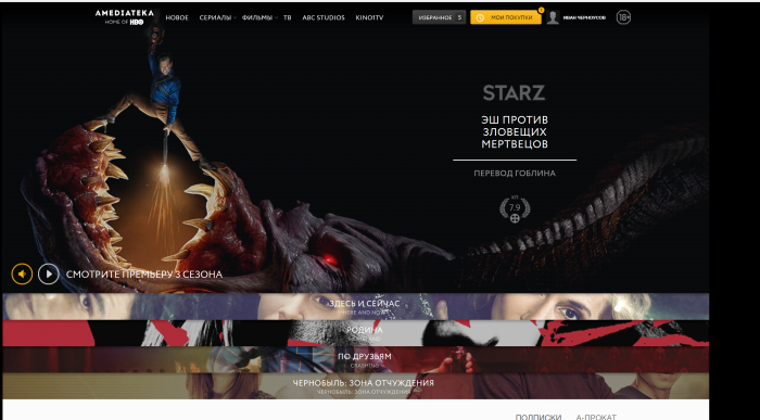Amediateka, пожалуй, крупнейший отечественный сервис онлайн-просмотра сериалов. Доступны сериалы на любой вкус: как зарубежные хиты каналов HBO и ABC, так и отечественные. Здесь вы можете найти «Игру Престолов», «Карточный Домик», «Мир Дикого Запада», «Твин Пикс», «Шерлока» и еще множество других хитов.