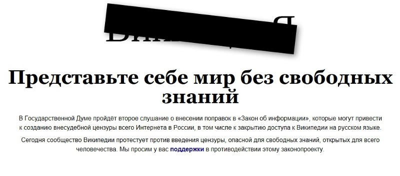 Сегодня «Википедия» закрыла доступ к русскоязычной части сайта в знак протеста о внесении поправок в «Закон об информации». При этом мобильная версия продолжает работать.