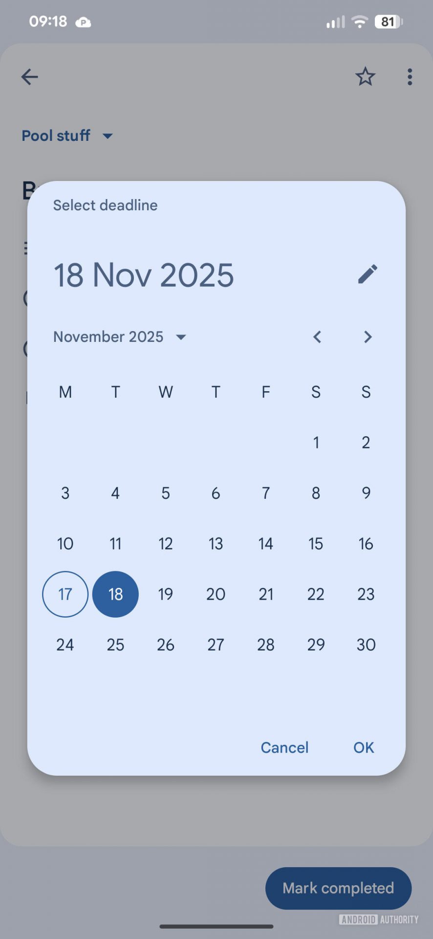 Как сообщают пользователи, и мы можем это подтвердить, в приложении Google Tasks для Android действительно появилась поддержка крайних сроков. Но есть один нюанс, который убивает всю идею на корню: вы можете установить дату дедлайна, но не можете указать конкретное время. В чем проблема? В том, что задача без времени — это просто запись в календаре, а не полноценный дедлайн, который нужно закрыть, например, к 18:00.