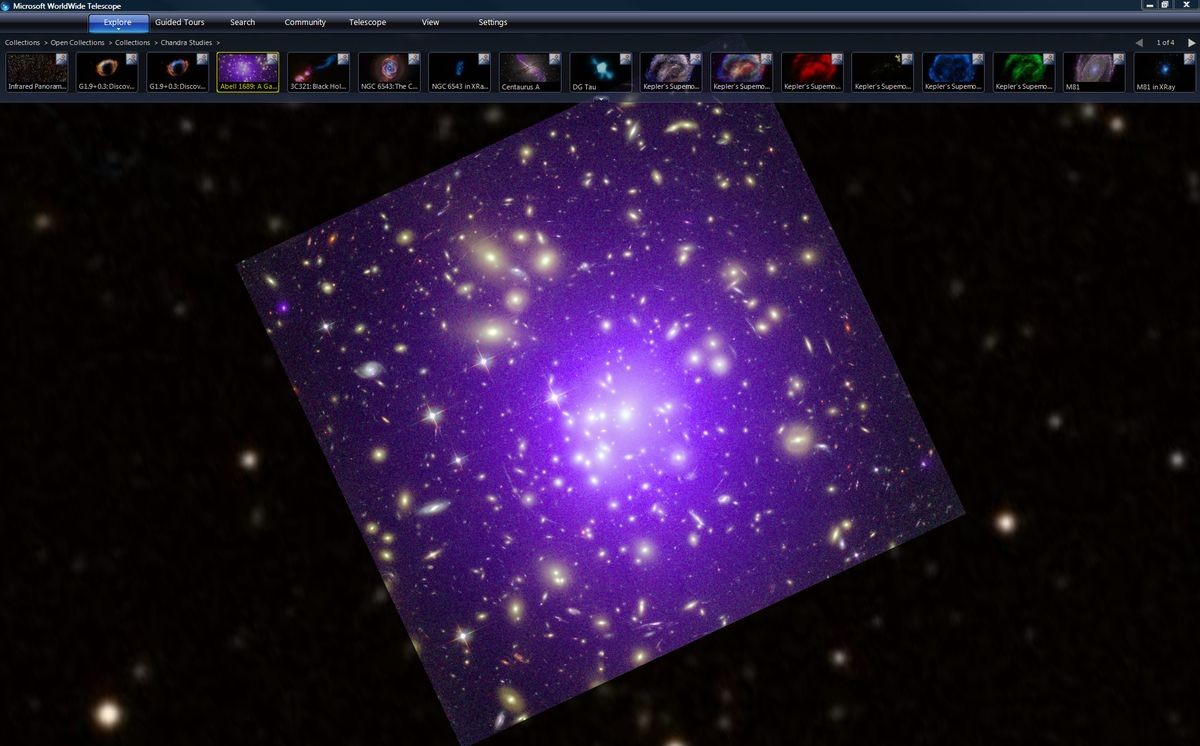 В Московском планетарии установлен стенд виртуальной обсерватории WorldWide Telescope. WorldWide Telescope — это программа, уже на протяжении 20 лет разрабатываемая научно-исследовательским подразделением Microsoft совместно с рядом научных и государственных учреждений.
