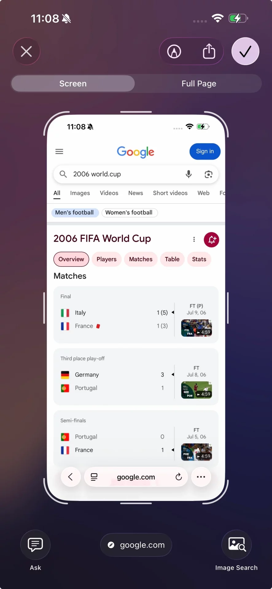 Как это работает? Просто: сделайте снимок экрана, и в нижней части страницы вам будут предложены несколько очень полезных опций. Вы можете воспользоваться функцией Ask, которая загружает снимок экрана непосредственно в ChatGPT и запрашивает контекст. Также есть функция поиска изображений, которая открывает Google и показывает похожие изображения. Вы также можете выделить нужную часть экрана, но в любом случае можно использовать снимок экрана целиком.
