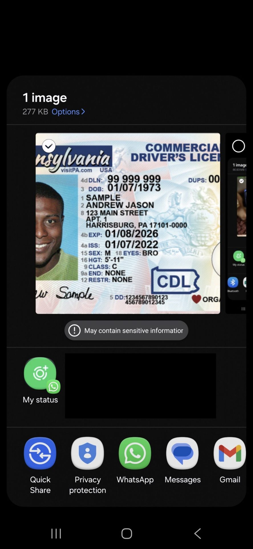 В этом примере пользователь делится изображением, содержащим водительское удостоверение. Этот человек может выбрать, какую информацию он не хочет, чтобы видел другой человек. И, похоже, у вас будет несколько способов скрыть эту информацию, будь то пикселизация, размытие или полное сокрытие. Вы даже сможете сравнить отредактированную и неотредактированную версии перед отправкой изображения.