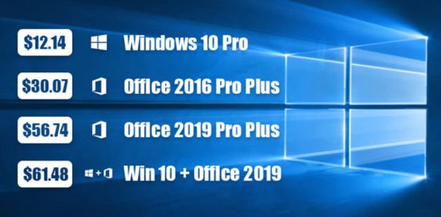 • Windows 10 Pro + Office 2019 Pro ($61,48)