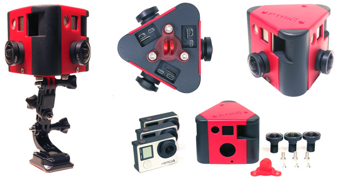 Системa для сферической съемки высокого разрешения получила название PTRig. Основное ее преимущество заключается в том, что вместо 6 или 10 GoPro камер для съемки необходимо всего лишь 3 модели Hero3 или Hero4.