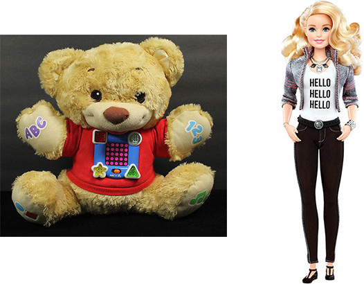 К медведю Fisher-Price и кукле Mattel Hello Barbie у экспертов претензий вроде бы и нет, но они отмечают, что ранее эти игрушки изучали другие исследователи, признавшие их не полностью безопасными.